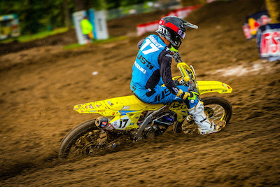 Brea, CA (August 24, 2020) – The JGRMX/Yoshimura/Suzuki Racing and Twisted Tea H.E.P. Motorsports teams attacked the muddy track at the Loretta Lynn's National II where JGR’s Alex Martin and his Suzuki RM-Z250 won the second moto and nabbed an overall podium finish. Max Anstie brought home a podium finish in moto two on his H.E.P.-tuned Suzuki RM-Z450 and both Joey Savatgy and Fredrik Noren put a JGR Suzuki RM-Z450 inside the top five in moto one and inside the top ten in moto two at the second round of the 2020 Lucas Oil Pro Motocross Series. Additionally, Suzuki riders led the most laps of any manufacturer, leading 26 laps over the four motos on Saturday.